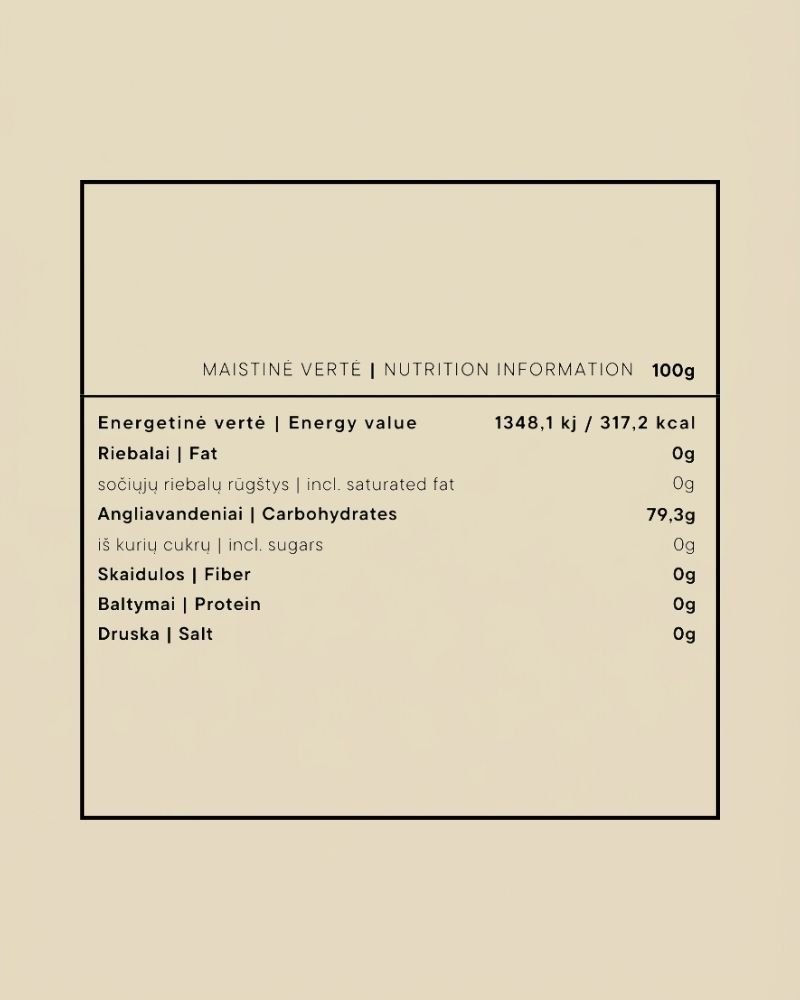 Tinka veganams ir vegetarams, be GMO, be glitimo, tinka košeriui, tinka halal.